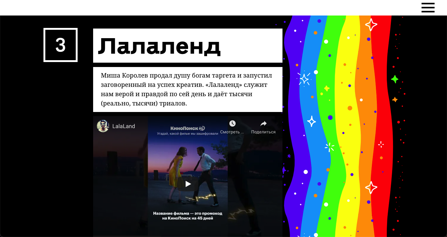 Продумывала рекламные компании продуктов канала на сайте: рисовала лендинги, ставила задачи дизайнерам, верстала статьи и перекладывала их в приложение.